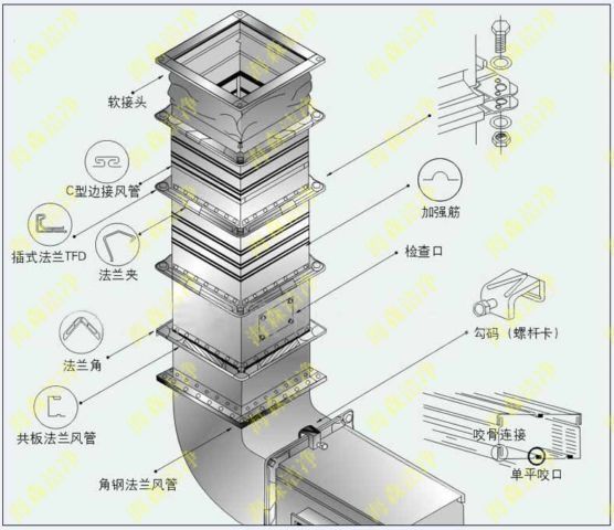 風管,是用于空氣輸送和分布的管道系統。有復合風管和無機風管兩種。復合風管以Durkduct風管為代表。可按截面形狀和材質分類。風管制作不銹鋼風管制作是在咬口縫、鉚釘縫、法蘭翻邊四角等縫隙處涂上密封膠(如中性玻璃膠)。涂密封膠前應清除表面塵土和油污。按截面形狀,風管可分為圓形風管,矩形風管,扁圓風管等多種,其中圓形風管阻力小但高度尺寸大,制作復雜。所以應用以矩形風管為主。按材質,風管可分為金屬風管,復合風管,高分子風管。